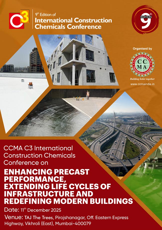 The India Chapter of ACI has always endeavored to provide technical, networking, and growth opportunities to our members, by means of our conferences and our association with other leading events in the Construction Industry. We would be happy to inform you that Construction Chemicals Manufacturers Association (CCMA) organised 9th Edition of C3 International Conference on “Enhancing Precast Performance, Extending Life Cycles Of Infrastructure And Redefining Modern Buildings” on 11th December 2025 at Taj, The Trees, Vikhroli, Mumbai.