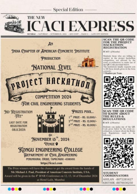 India Chapter of American Concrete Institute organized National Level Project Hackathon Competition at Kongu Engineering College, Tamil Nadu.
