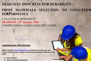 The essay topic for this year is: “Designing Concrete for Durability: From Materials Selection to Long-Term Performance.”